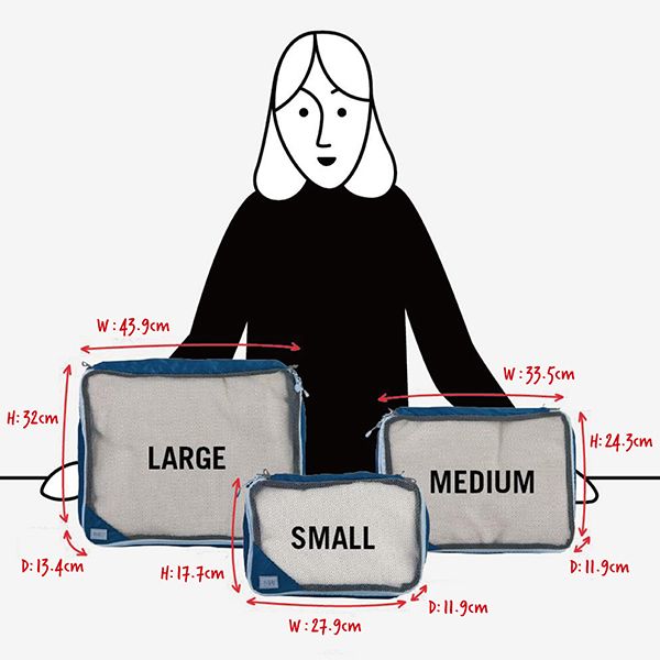 メッシュ生地で通気性がジップキューブと汚れても汚れを落としやすいコンプレッションキューブ。