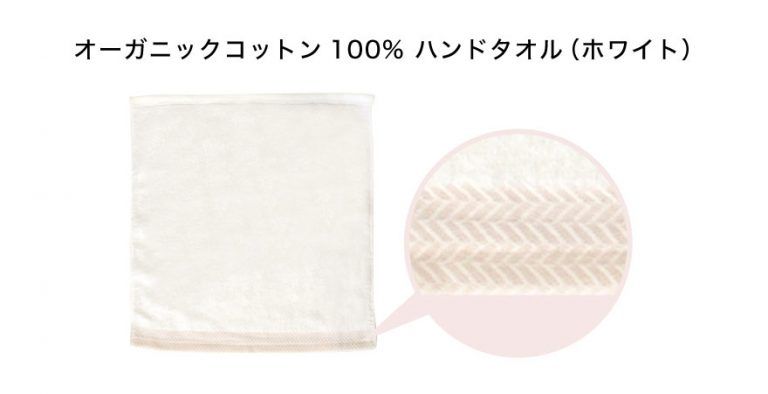 オーガニックコットン100%でやさしい肌触りのハンドタオル。