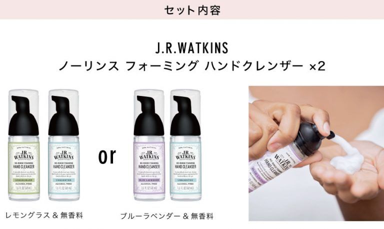 J.R. WATKINSの人気商品「ノーリンス フォーミング ハンドクレンザー」2本分の価格で、