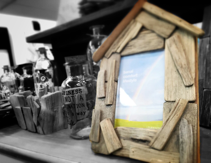 天然流木の味わい深いフレームには、