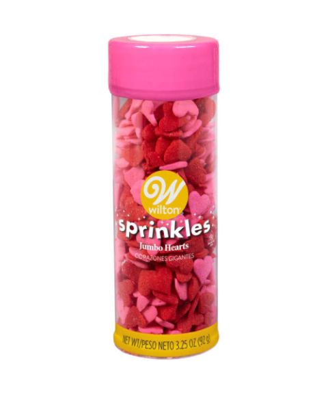 赤とピンクの約1cmのハート型スプリンクルです。