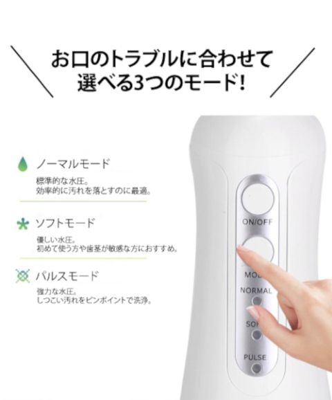 優しい水圧。初めて使う方や歯茎が敏感な方におすすめ。