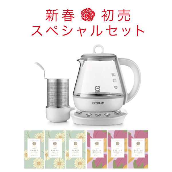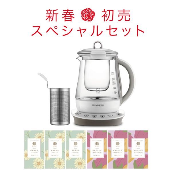 薬膳ポットを使ってみたいけれど、ちょっと難しそう…。という方にオススメのセットです。BUYDEEM(バイディーム)を使えば、お手軽に薬膳調理が楽しめます。スペシャルセットの健美茶とお水を入れてボタンを押すだけ!お茶だけでなく、お粥も簡単に作れます。BUYDEEMは、いろいろな調理の時短にもなる、おススメのポットです。この機会をお見逃しなく!