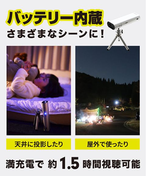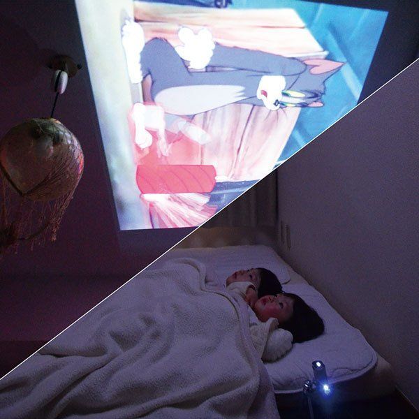 スクリーンを用意しなくても、天井に投影し、寝ながら映画が楽しめます。