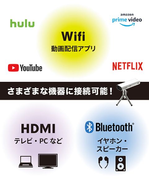 Android内蔵だから、スマートフォンやパソコンをプロジェクターに繋ぐ必要は無し!