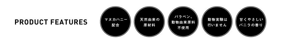 抗菌効果・美容成分に注目が集まるマヌカハニー、スイートアーモンドオイル、ローヤルゼリーなどをブレンドし、