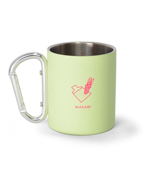 こちらのマグカップ、取っ手がカラビナ(開閉式フック)になっていて、