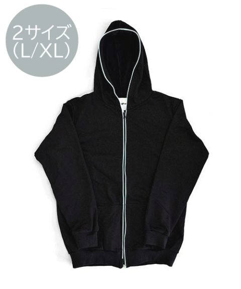 シンプルな黒いパーカーとして、