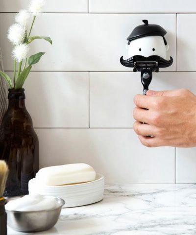 カミソリを壁に浮かせて収納できるので