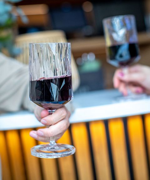 ワイングラスを片手に、