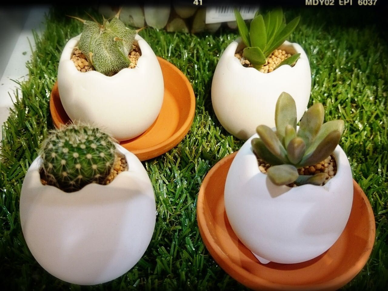 可愛いエッグの中に多肉植物・