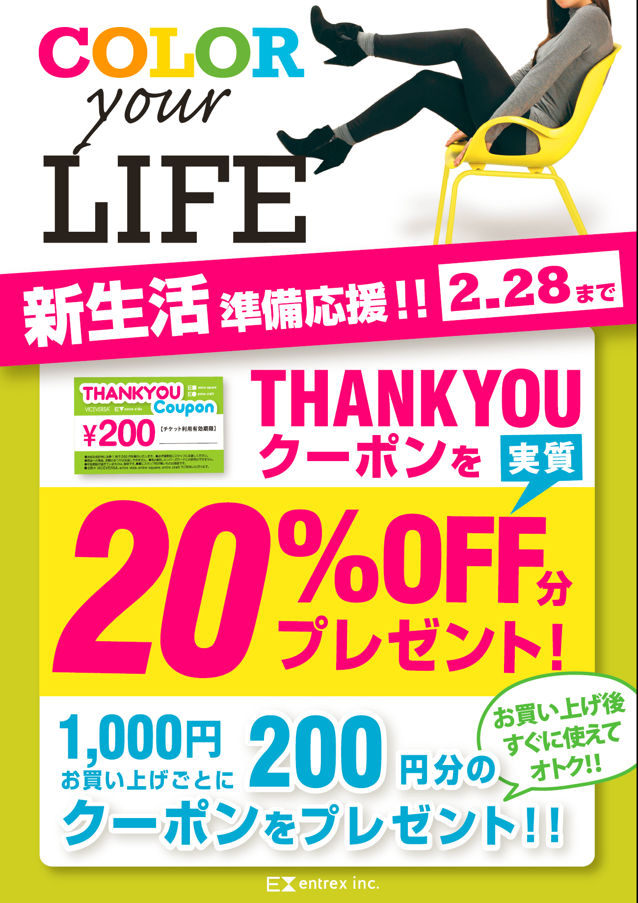 1000円お買上ごとに200円のクーポン券をプレゼント!