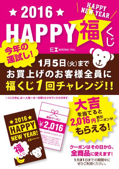 2016円分使える「HAPPY福クーポン」が!!?また、特賞には飲むとハッピーになれる?ドリンクが当たります!!