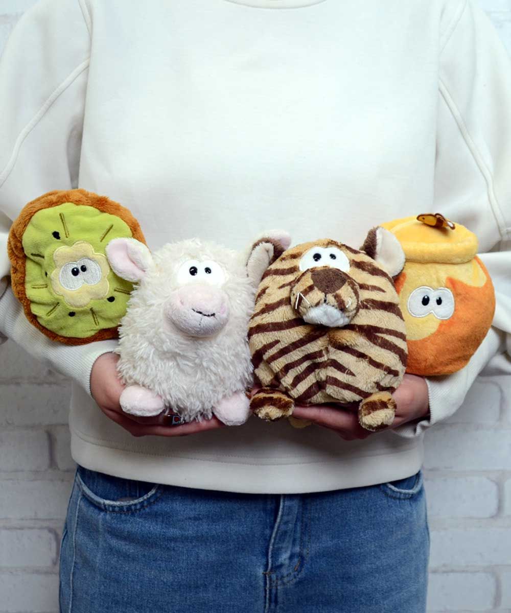 「ぼくは、キウイフルーツに変身できるよっ!」「ぼくは、ひつじに!」 くるっとひっくり返すと、別のキャラクターに大変身!そんなぬいぐるみたちと一緒なら、楽しさも二倍!コロンとしたフォルムも、とってもキュート♡
