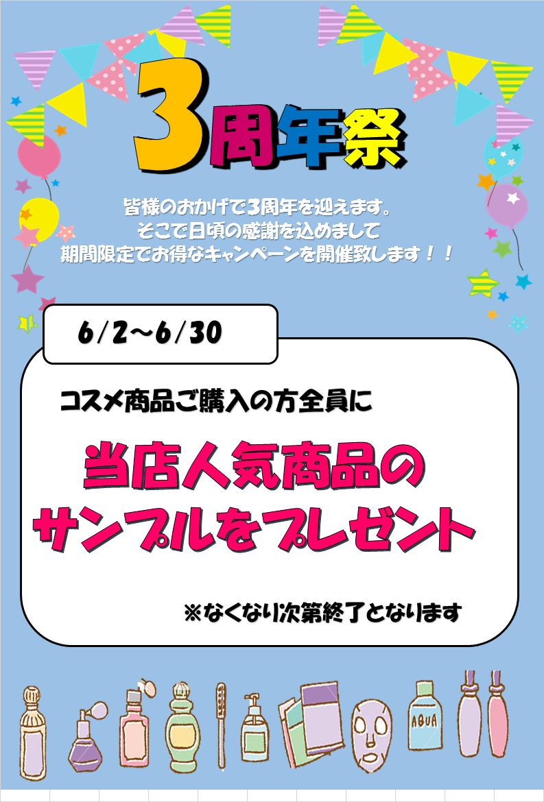 6月4日で3周年を迎えます。