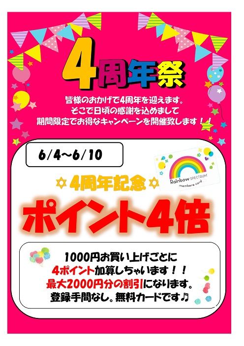6月4日で4周年を迎えます。