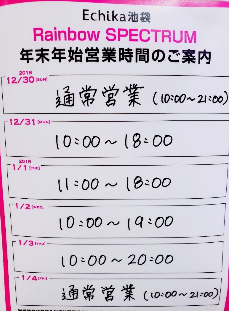 年末年始営業時間のお知らせ。