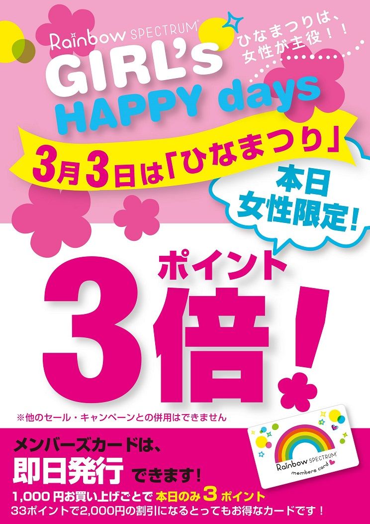女性限定!ポイント3倍キャンペーン。
