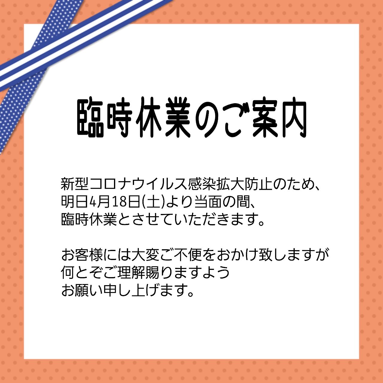 臨時休業のお知らせです。