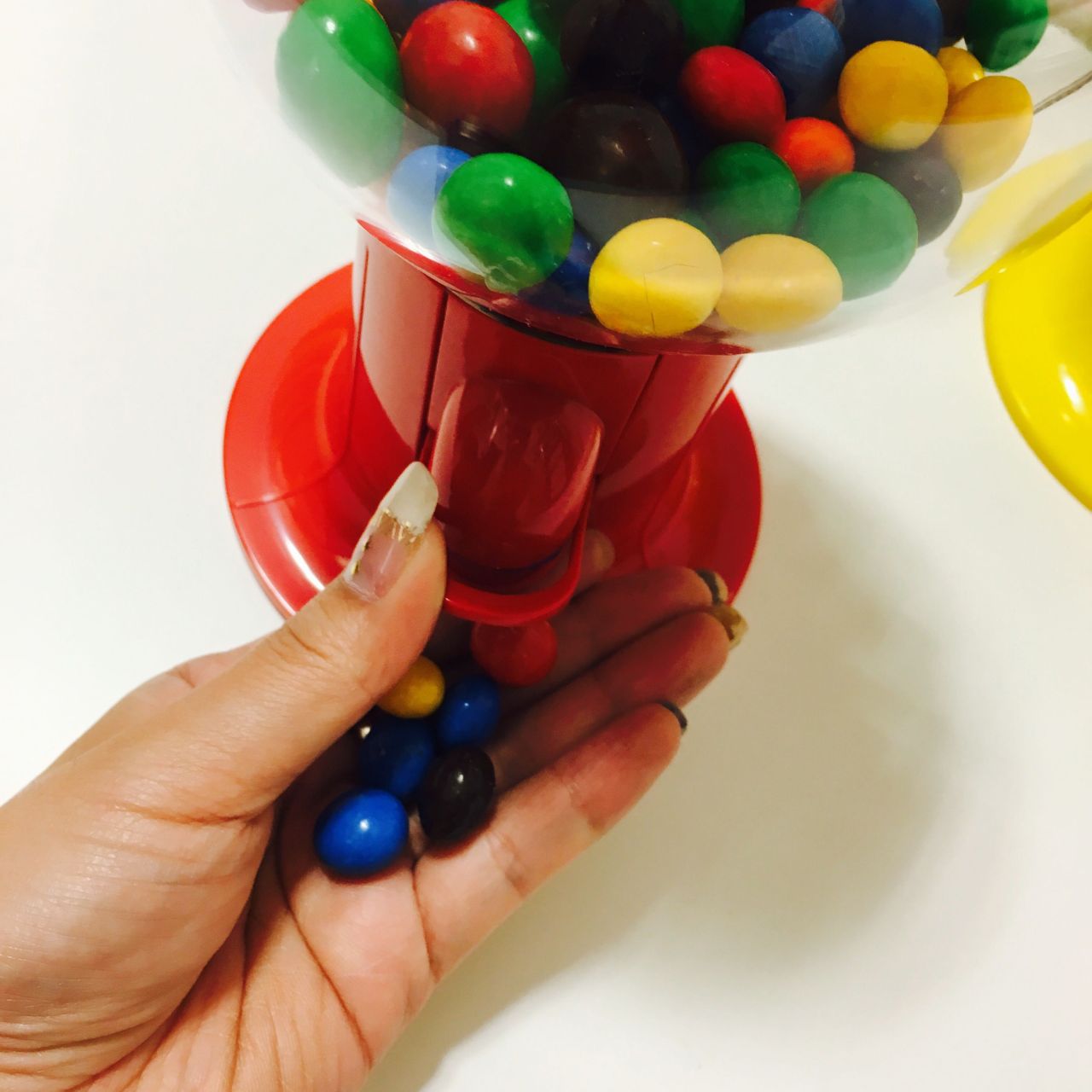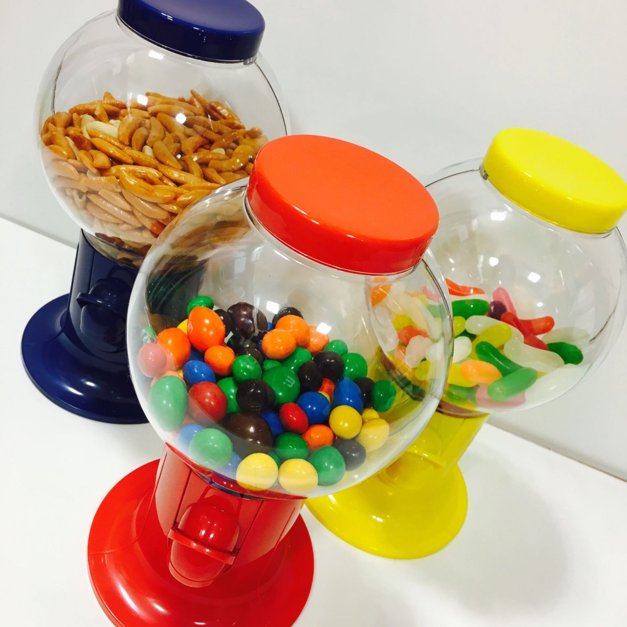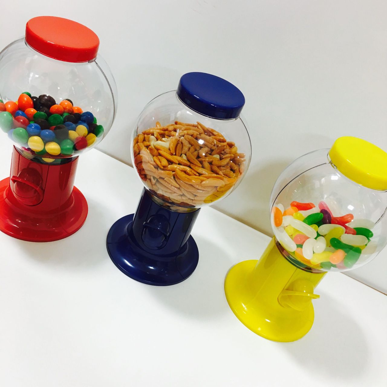 ジェリービーンズやM&M’sチョコなどのお菓子や、はたまた柿ピーやアーモンドなどのお酒のつまみを入れておけば、レバーを押して片手でポイポイお口に放り込めます。