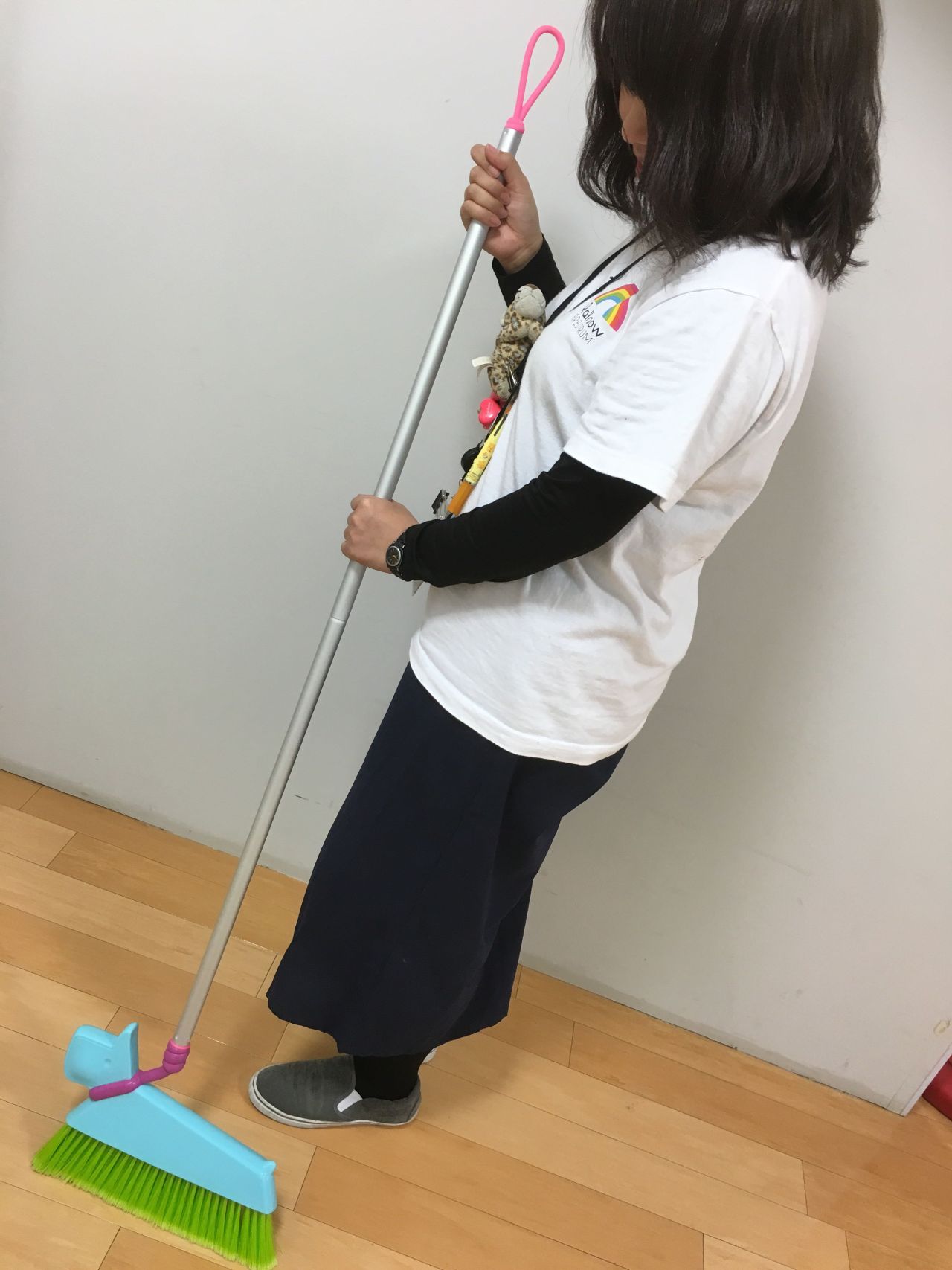 犬とお散歩しているかのように、掃き掃除ができるほうきです。