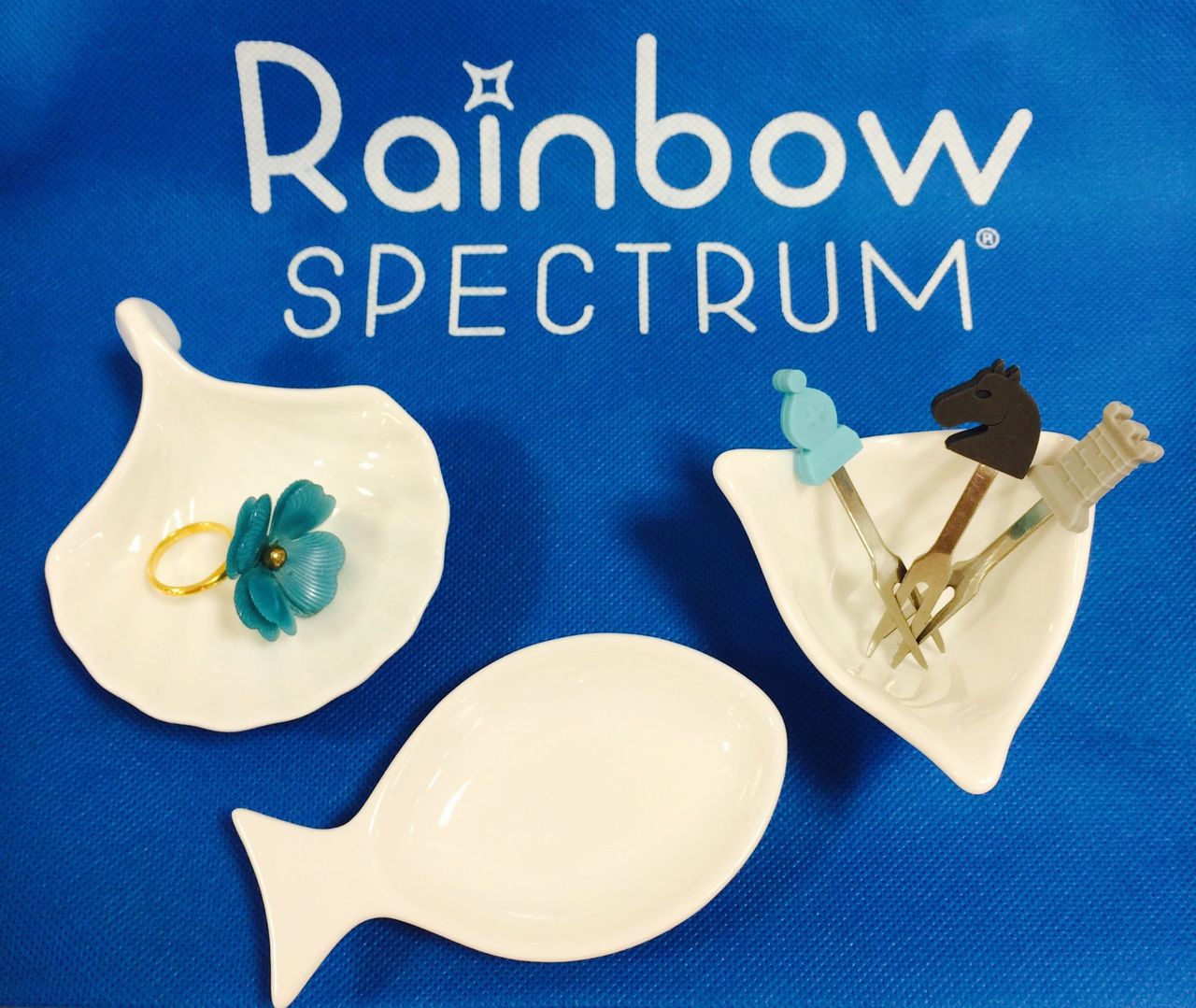 お魚の形のホワイトディッシュを醤油皿にしたり、
