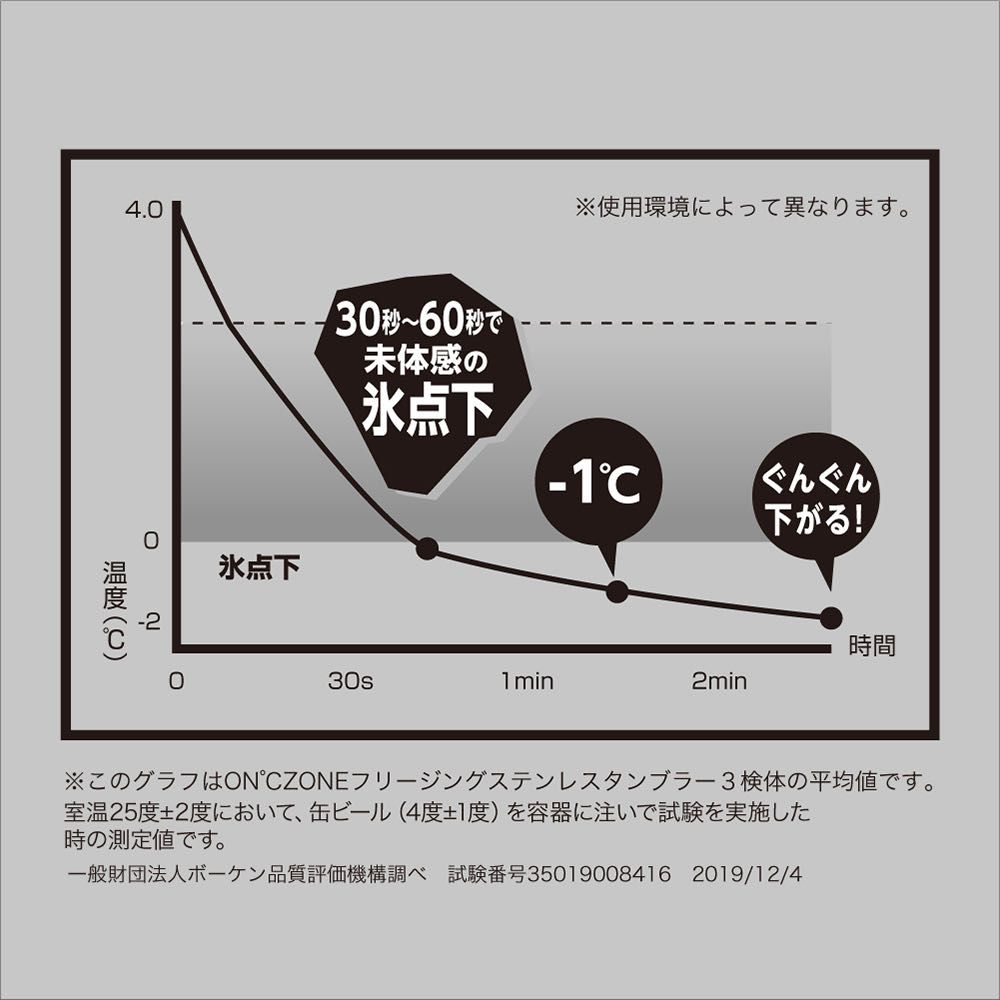 ステンレス2重構造の内側に保冷剤の層が入った独自の真空冷却3層構造が秒で氷点下までビールなどのお酒をキンキンに冷やします!