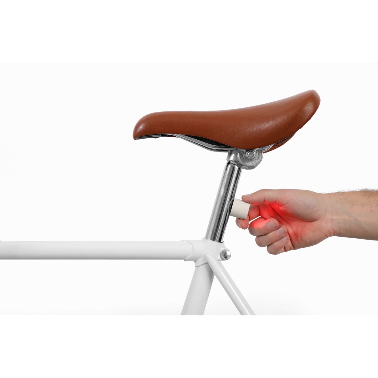 正面は白いライト。後方は赤いライトと2つがひとつになっています。