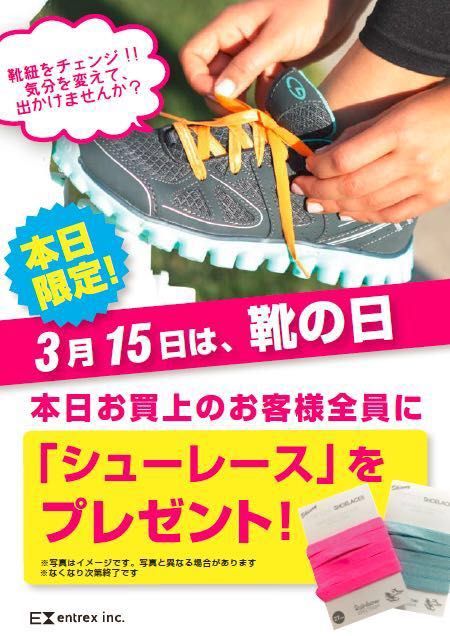今日3月15日に、店内商品お買い上げのお客様先着でシューレースをプレゼント!