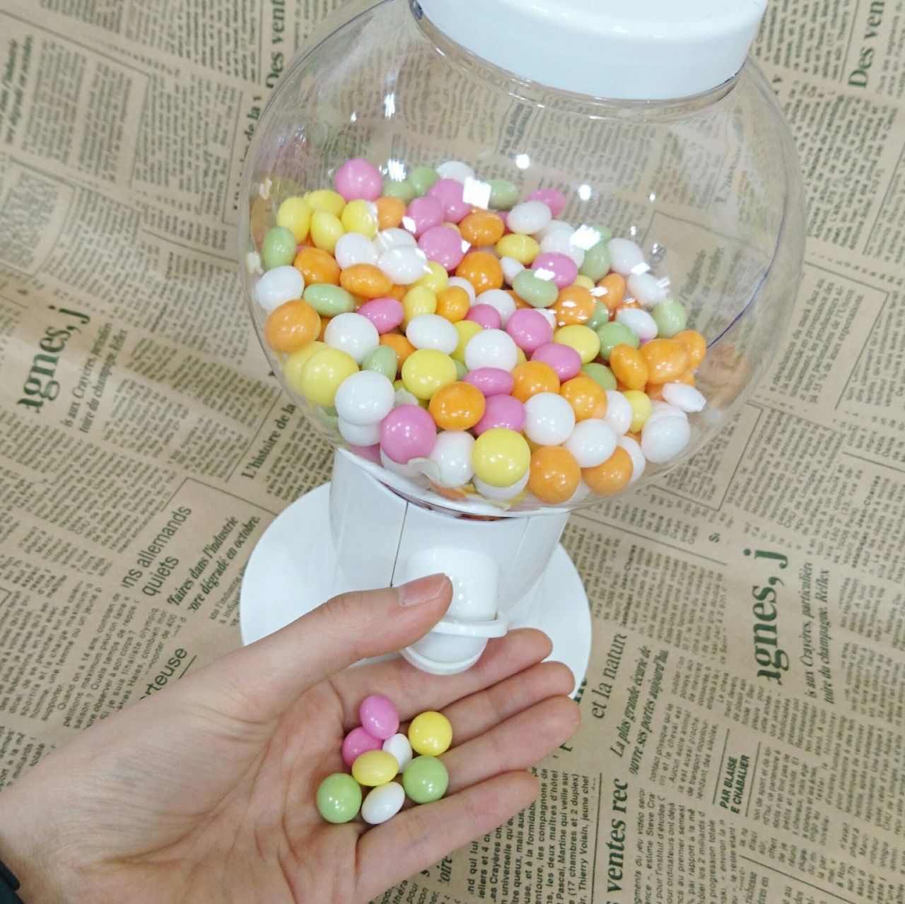 中にお菓子を詰めてレバーを引くと