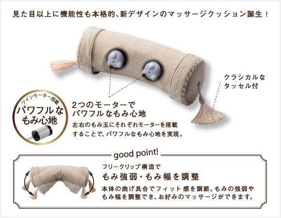 2つのパワフルなもみ心地のモーターが