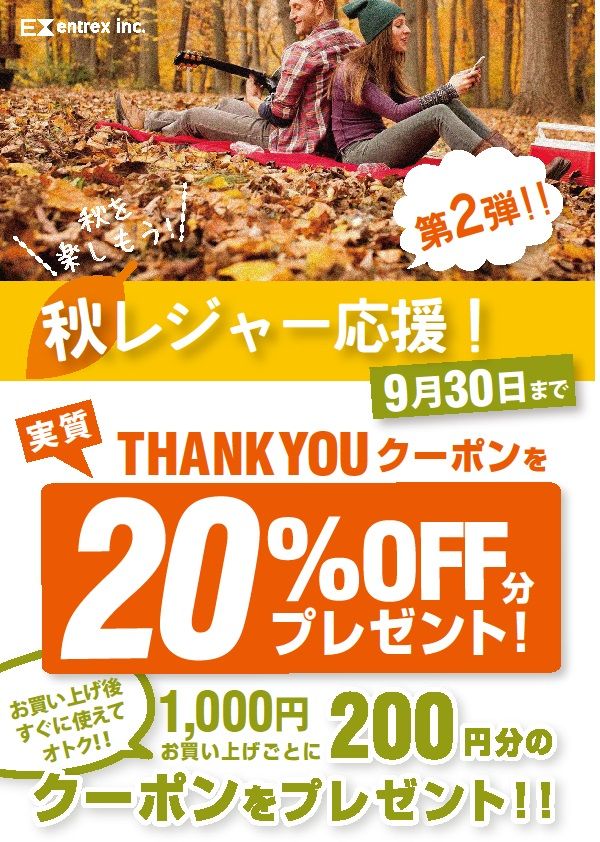 秋レジャー応援!サンキュークーポンキャンペーン!!