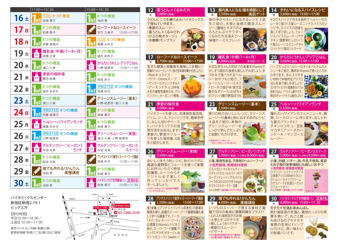 Vitamix Center ヘルシーフード講習9月のスケジュール